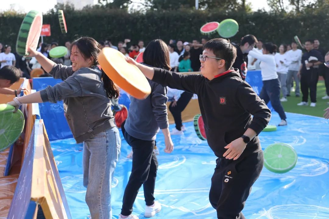 本次嘉年華有為運動健兒們設(shè)置的田徑、技巧籃球、技巧足球、技巧羽毛球等競賽項目,有體力與腦力雙重挑戰(zhàn)的8字跳繩、合力建塔、穿越火線、水果大戰(zhàn)、齊心協(xié)力、雷霆戰(zhàn)鼓等團體趣味項目,還有燃燒卡路里、贏取鏖戰(zhàn)獎勵的盲眼打人、螃蟹跑、巨型搖色子、沙包投準、揪尾巴、旱地冰壺等個人挑戰(zhàn)項目。通過參與項目,可以贏得對應的團體積分或禮品券,兌換冰糖葫蘆、棉花糖、泥人等甜蜜有趣的獎品。