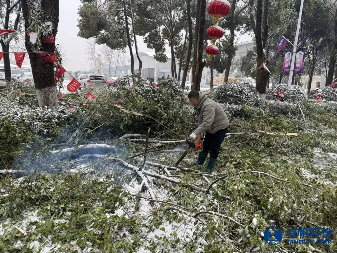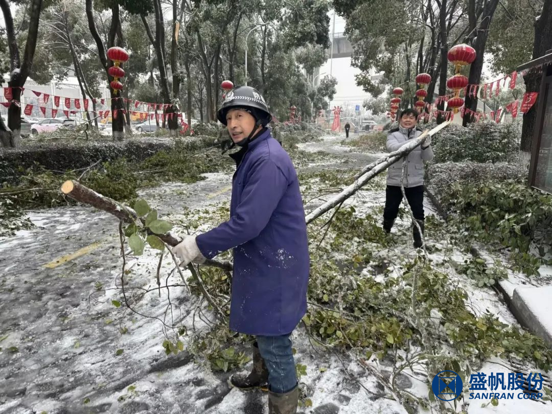 自2月3日起,由于連日來遭遇凍雨、降雪天氣,盛帆園區(qū)內(nèi)樹木倒伏、樹枝被壓斷,員工及家屬出行受到嚴(yán)重影響。