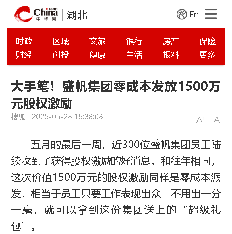 五月的最后一周,近300位盛帆集團(tuán)員工陸續(xù)收到了獲得股權(quán)激勵的好消息。和往年相同,這次價值1500萬元的股權(quán)激勵同樣是零···