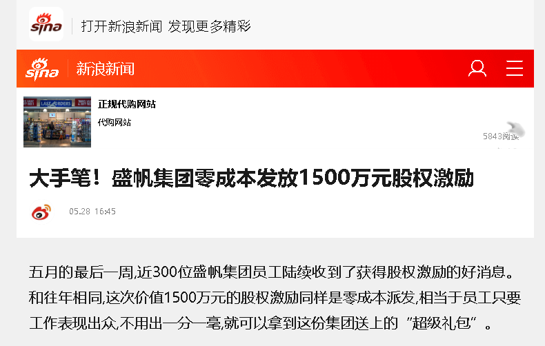 五月的最后一周,近300位盛帆集團(tuán)員工陸續(xù)收到了獲得股權(quán)激勵的好消息。和往年相同,這次價(jià)值1500萬元的股權(quán)激勵同樣是零···
