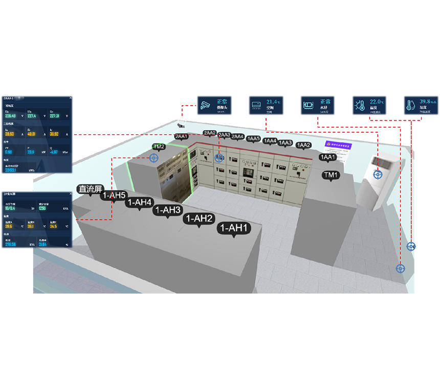 通過搭建數(shù)字化配電室,將各類電氣設(shè)備以及環(huán)境傳感器等監(jiān)控信息融匯綜合到配電房三維可視化中,實(shí)現(xiàn)情景化巡檢,幫助運(yùn)···