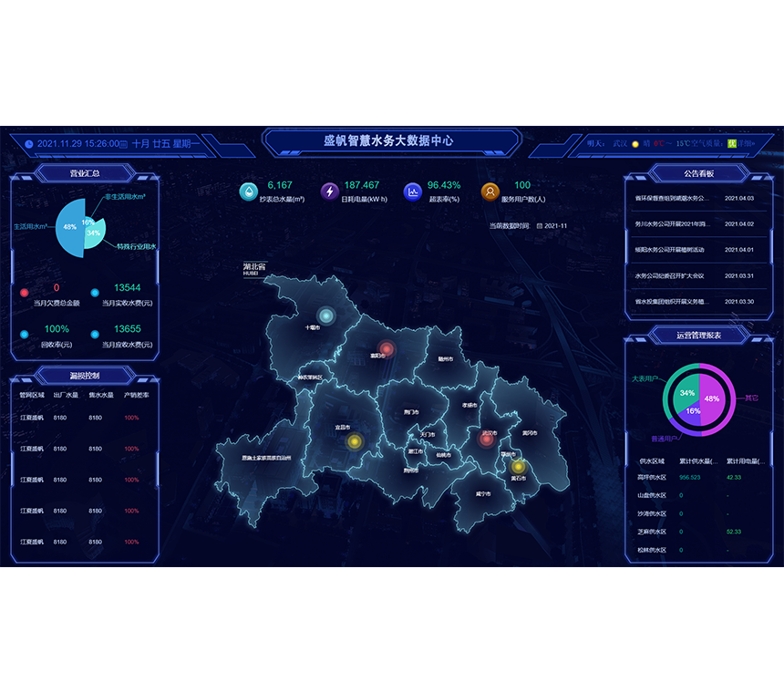 涵蓋DMA分區(qū)計(jì)量管理系統(tǒng)、GIS管網(wǎng)地理信息系統(tǒng)、節(jié)水駕駛艙等系統(tǒng)模塊,同時(shí)支持接入泵房運(yùn)行監(jiān)測(cè)、綠化灌溉和非常規(guī)水···
