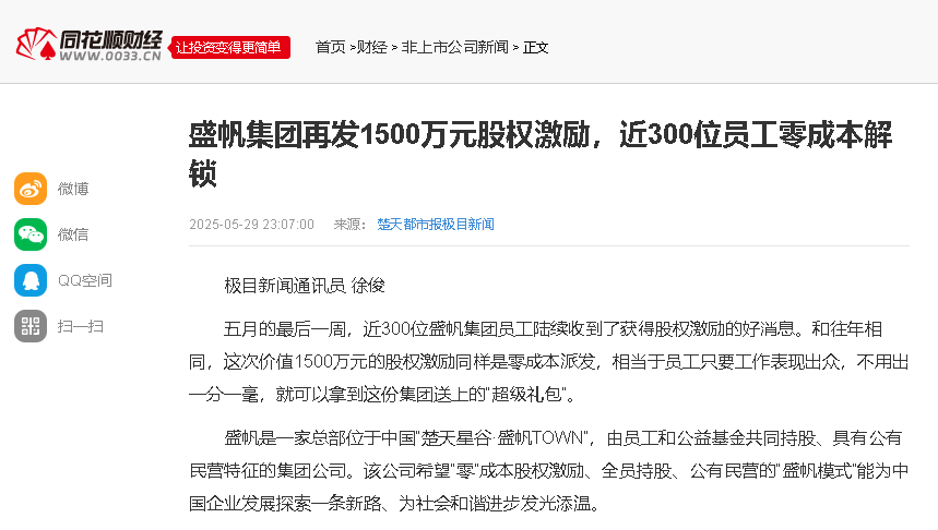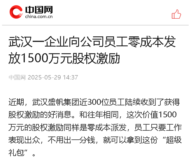近期,武漢盛帆集團(tuán)近300位員工陸續(xù)收到了獲得股權(quán)激勵的好消息。和往年相同,這次價值1500萬元的股權(quán)激勵同樣是零成本派···