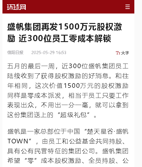 五月的最后一周,近300位盛帆集團(tuán)員工陸續(xù)收到了獲得股權(quán)激勵的好消息。和往年相同,這次價值1500萬元的股權(quán)激勵同樣是零···